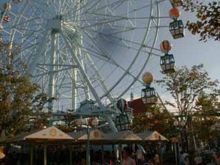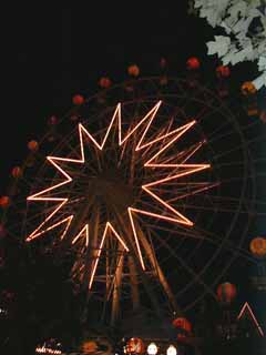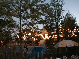 | チボリ公園には、20の有料アトラクションがある。 何といっても、とっぷり日が暮れたあとのチボリバルーン(観覧車)。是非、顔のついたゴンドラに乗りましょう。 人気が高いのが、急流を滑り落ちるフラーナングホール。遊園地に欠かせないコースタは、オーディンエキスプレス。周囲が住宅地のため、騒音に配慮し、ゴムタイヤになっています。以上が、人気御三家かな?全部、A券(500円)が必要だぁ〜。(^^;) |