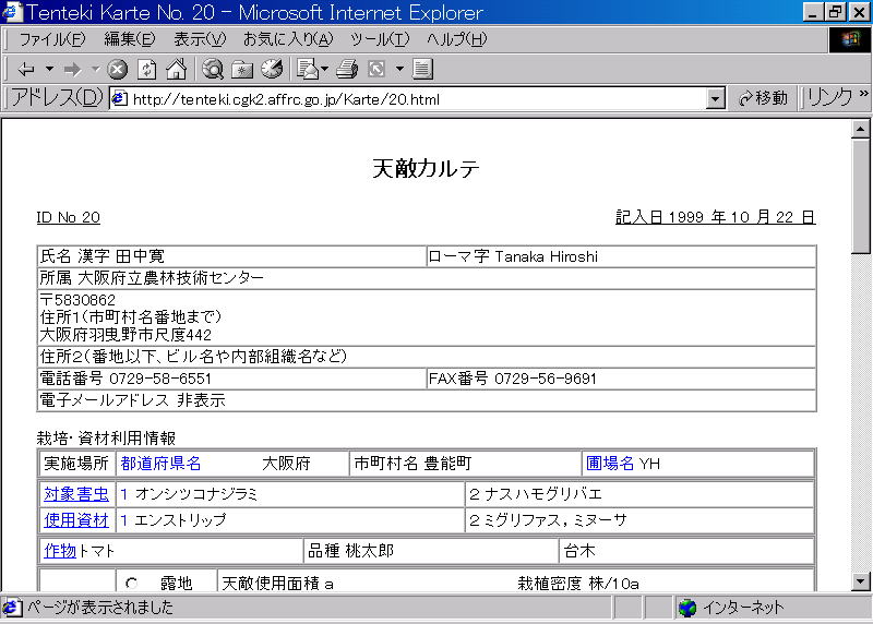表示されたカルテは印刷したり保存して資料化できます。 天敵カルテの個々のデータの著作権は記入者にあります。資料化して活用する場合には、記入された文面をできるだけ尊重し、勝手な改変や意図的な削除などをしないようにしてください。
