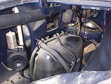 左フェンダー後方のカーペットをめくるとパワーアンテナユニットと