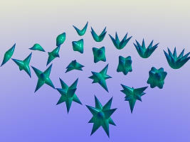XYZおのおのの方向に三角関数により振動させた時の軌跡で、振動周期を違えて様々の三次元曲線を描かせました。 シーンファイル:lpsgoslo.txt |