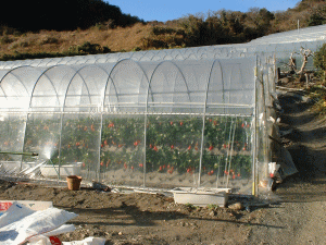 結構歩くが、駐車場の近くの平坦な場所のハウスより、山肌にあるハウスの方が石垣イチゴ!って感じでこれはOK!!