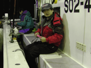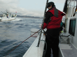 由比沖に着くと見慣れた船がすでに釣っていた。