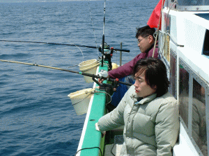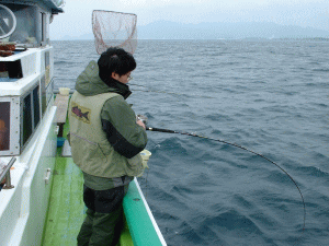 この船にしては珍しく流し釣りだ。(いつもはアンカーを下ろしての架かり釣りが多い)