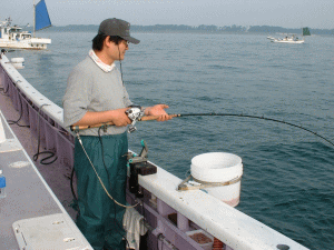 後で船長に聞いて分かったんですが、最近逆に流れてるみたい。それに腕の悪さも手伝ってか今日も釣れない。