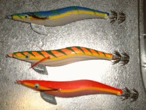 本日使用したエギ。 ヒットしたのは上のブルー。 他のも一応に当たりました。 |