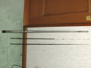 今回は、間違って30号穂先を持っていってしまい大失敗。 20号穂先なら・・・。 穂先先端が白いのが20号、黒が30号。 |