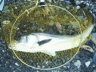 余りの重さにタモの柄が上手く仕舞えない。早速浜に降りて検量すると70cm、2.4kgであった。