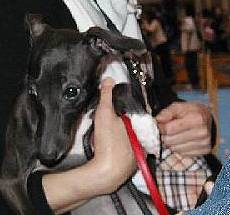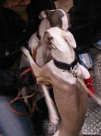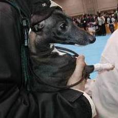 かつてはブレイズもビビリまくった、このショー会場の尋常ならざる人と犬の波も喧騒も恐るるに足りず。目の前に立ちはだかるものは、たとえそれが自分より何倍も大きいボルゾイの尻尾であろうがちょっかいを出したがるファイト!
