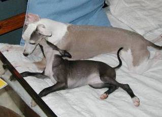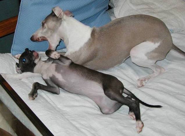 ブレイズ・・・大喜びでニーニの身体中をなめ回して世話を焼きたがる。