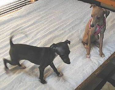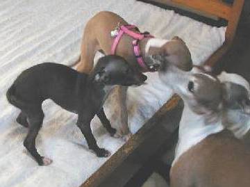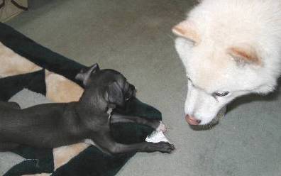 そして最も意外な態度をとり、大穴万馬券となったのがブレイズだった。いつも自分より歳若い犬(小型限定)に対して、飼い主の私が内心ちょっと自慢に思うくらい可愛がりたがるブレイズが、ニーニを可愛がるどころか受け入れを拒否したのである。ブレイズに世話係を押し付けようと思っていた私には、まさに晴天の霹靂。