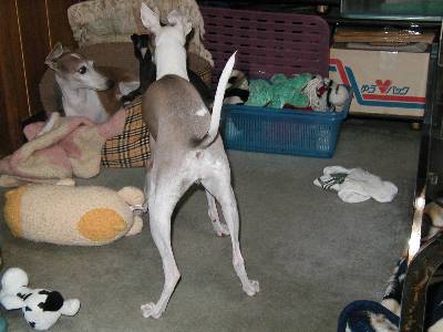 ワトスン・・・ひとまずこの新参者を検品したのち、鼻に皺を寄せて「があっ!」と一発かまし、レフリー(私)に制止されて「ったく、しゃあないな〜」としぶしぶ諦める。