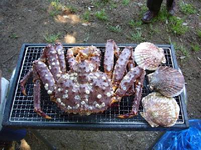 その周囲で日よけテントを組み立てたり、食材をバーベQしたり黙々と働いている男衆。