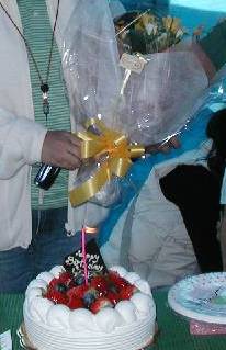 このときショーはちょうどお昼の休憩タイムに入っていたので、1日遅れのYOKOさんのお誕生日を祝い、みんなで切り分けたケーキを食べる。う〜ん、こういうのが楽しいんだよね〜♪