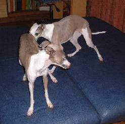 アスレチック場のごとくに障害物が雑然とひしめいている我が家とは違い、サナっちさんのお宅のリビングはとても広々としていて3頭のイタグレたちが走り回るには十分なスペースがある。そこで犬たちを遊ばせながら、飼い主たちはお茶を飲みつつ四方山話。一時は存亡が心配されたケーキの無事も確認され、う〜んシアワセ!しかも今回はホームズたちの大好きなYOKOさんもご一緒してくださっている。