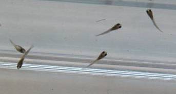 しかし飼い主のほうはといえば、プラケース内で「ひえぇ〜、ここ何処?」とうろたえているふうの稚魚を満足げにニンマリと眺めている。まったく血も涙もない話だ。