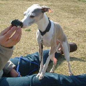 そうしてひととおり遊んだあと、サナっちさんがおやつに犬用ビスケットをくださった(私にではナイ、念のため)。「わ〜い♪」と喜んでビスケットを食べるホームズ。