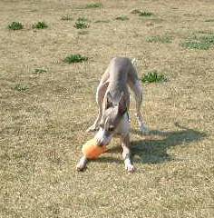 ホームズがそんなことをしている間、サナちゃんはお気に入りのオモチャで遊んでいた。リードという制約が無い中で、元気に芝生を駆け回るサナちゃんの姿はとってもキレイでカワイイ。