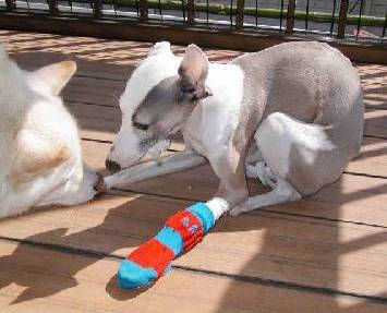重たいギブスのはまった前脚でホームズがワトスンを3度か4度張り倒した頃(本人は遊びに誘っているつもりだろうが、殴られたほうは挑戦状を叩きつけられたと思ったことだろう)、レトリバーサイズの太さだったギブスは柴犬サイズになり、やがてはテーピングと包帯だけに