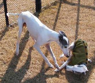 身体の大きさもあるだろうが、総体的には男の子たちのほうが活発で度胸も良い。わけてもエースパパは堂々としていて、他の男の子たちも一目置いている感じだ。一番立派な体格もさることながら、本日参加のイタグレたち、エースくんを除く11頭中、じつに9頭のパパなのだからさもありなん。