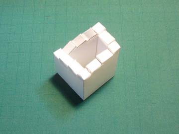 それで、錯視関連でいろいろ調べていて見つけたのが、写真の立体(以下のURLにある展開図から自作したのも)。