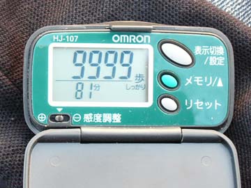 富士の夕景を撮ろうと思って歩数計を見ると、「しっかり歩数」が9999歩。珍しや……