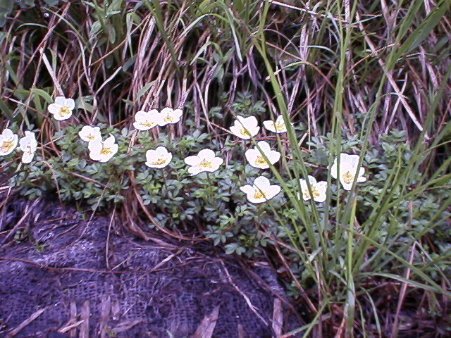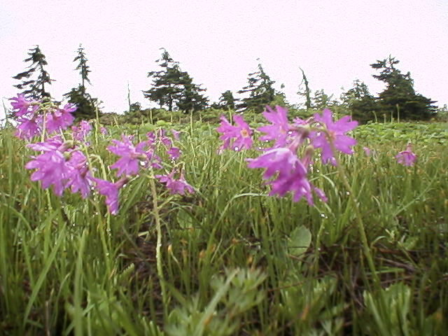 | 小さい花に混じり ひときは 大きい咲く しゃくなげ 山頂付近 |