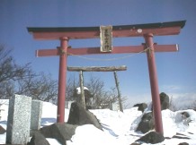 黒桧山頂の鳥居 | 黒桧山から見る地蔵岳、大沼 |