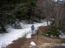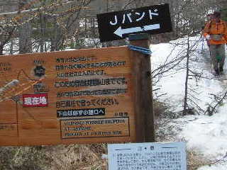 | 11:20 Jバンド合流地点 | 11:25 残雪の登山道 浅間山を見ながら登る |