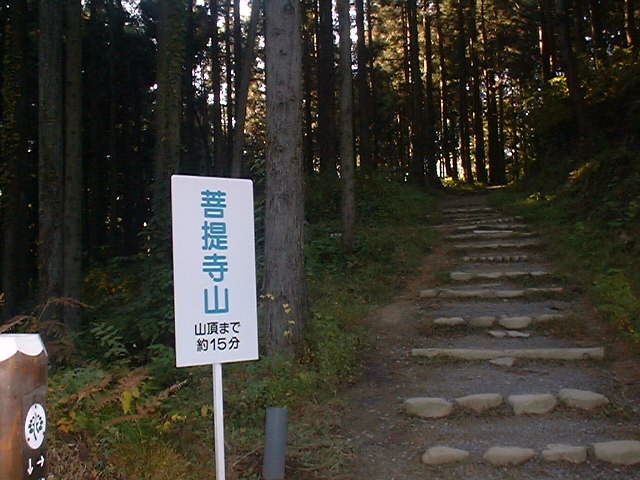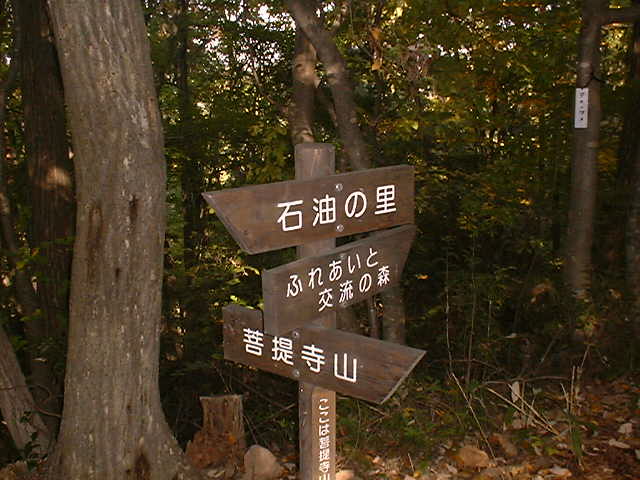 登り 石油の里駐車場(菩提寺山登山コース) −− 50分 −− 菩提寺山山頂