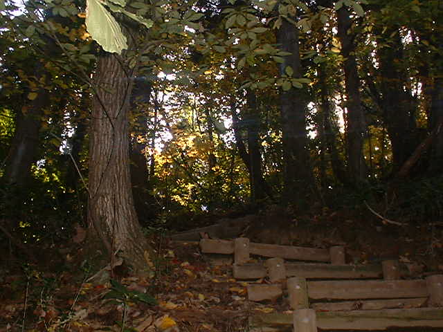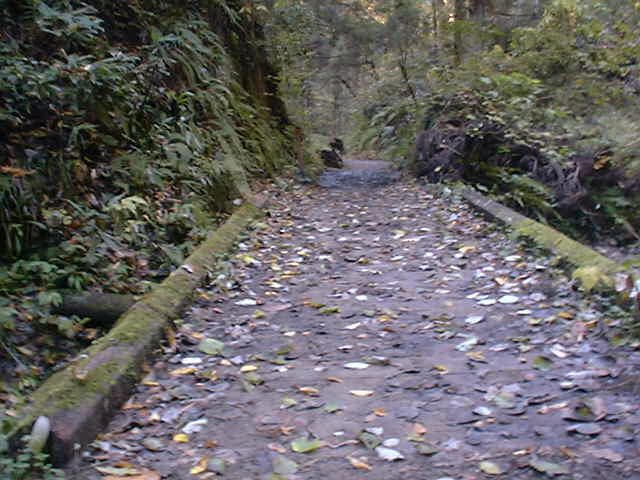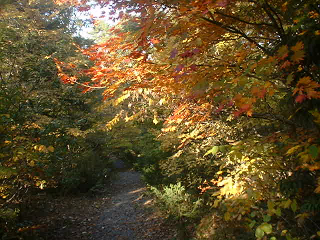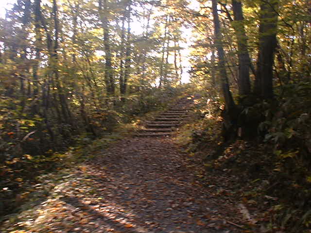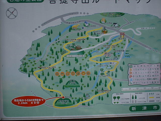 下り 菩提寺山山頂(白玉の滝コース) −−40分 −−白玉の滝(木もれ陽の道コース) −− 30分 −− 石油の里駐車場着