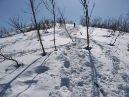 積雪はるがトレースがががしいて長靴で十分。早朝は急登で凍結軽アイゼン必要かも。