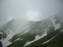 | 10:35 駒の小屋 | 水が美味しい | 11:00 越後駒山頂 | 雪渓で昼食 | ||