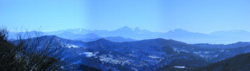 五百山登山口、大入峠から越後三山を眺める h12.12.23
