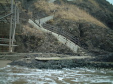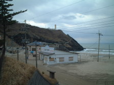 | 15:50 角田浜着 | 砂浜で汚れた長靴を洗う | 灯台コース登山口 を眺める |