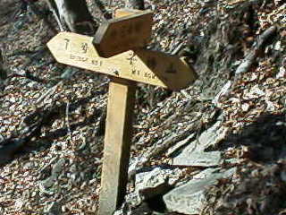 真新しい標識 以外に急登 6号橋からの合流 11時15分 → |