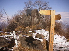 | 赤城icより 子持山を望む 10時05分 | 子持山頂到着 一等三角点の白杭 12時20分 |