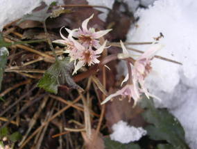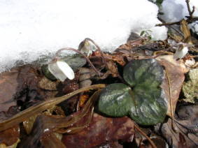 早春の雪と雪割草