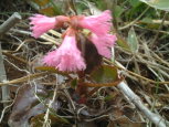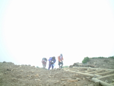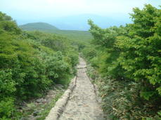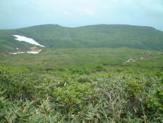 栗駒山 1627m (宮城県 いわかかみ平,中央コース 登山口) 天候曇り 登り 1時間45分 2002/06/20 栗駒山への案内標識は整備され 迷うことなく いわかがみ平登山口 まで行けた。 山道は整備されているスニーカーでも登れる。 山頂付近の草原では ヒナザクラの群生が見頃。 所々にピンクのイワカガミ、ショジョバカマが彩りを添えている。 山頂は風が強く、冷たく感ずる風が吹き長居出来なかった。