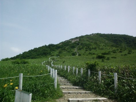 三国峠から山頂に向かう途中 ニッコウキスゲのお花畑が...