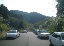 | am 11:47 両脇に多くの登山者の車 |