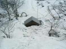山頂避難小屋 雪に埋もれ.. |