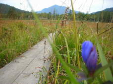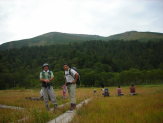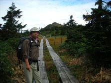 14:35 鳩待峠へ向かう 木道の登山道が続く |