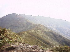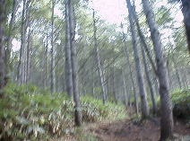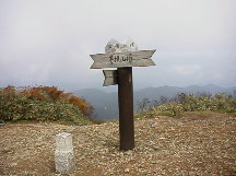 登りは比較的楽、林道で足慣らし 2時間弱で山の家。山頂では霧が湧いてきて