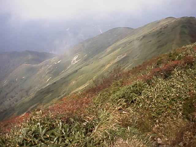 仙の倉まで足を延ばすのは単独登山でもあり 断念。紅葉は 松手山−平標山間