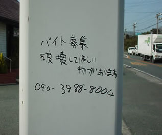 ■2/22日当方が営業する店鋪の看板支柱にこのようなイタズラ書きがありました。破壊という表現がどうも気になります、創業24年間で始めての出来事です。この時期に余りにもタイムリーな事ですので今回の事故と関係なければいいのですが.....一応物騒ですので警察に届けました。調査して下さるそうですが、同じ磐田署ですので、どんなものでしょうか?