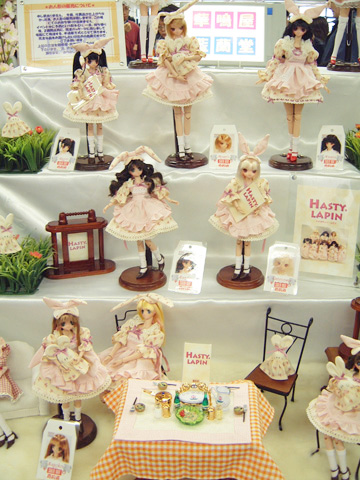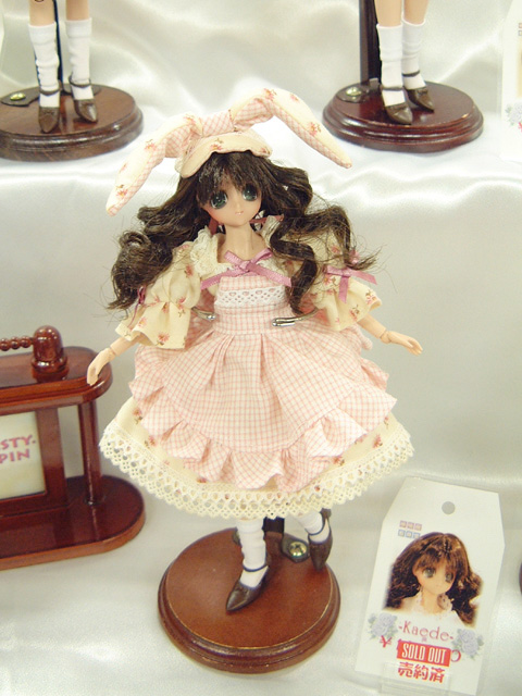 I・DOLL7において私が出会った「楓」ちゃんはこの雛壇の下から2段目におりました。他の娘達がHASTY.LAPINの女の子としてメニューとか、うさうさを抱えて微笑むなか、「楓」ちゃんはリーダーのウインシーさんと同じように何も持たず手を広げて私を見つめてきたのです。強い。