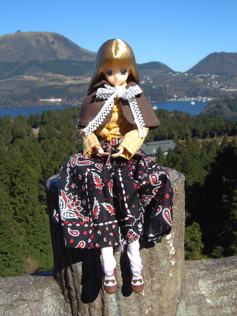 ホテルを辞しての帰り道。休憩所にて。サアラさんの後ろは奈落。