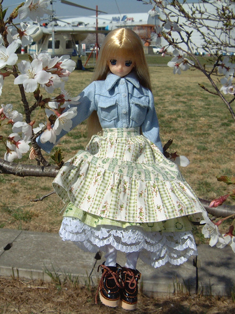 思わぬところで桜撮影に成功。まだ小さい桜の木がありましたのでがんばる。後方のヘリコプターは.....カモフ26かな? 民間塗装の機体って写真でもみたことないからあまり自信がないのですけど。(苦笑)