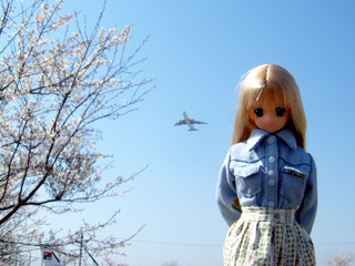 航空科学博物館は滑走路南端の延長線上にある。離陸直後の航空機が撮影できるのだが、写真のA300は離陸ポイントを手前にとっていたようなので随分と高いところに写っている。ちょっと残念だ。低いところを飛んでくれればこれの3倍くらいの大きさに写る筈なンですけどね。今日は風向きが悪かったのかこちらから離陸する航空機は少なく、15分に一機くらいしか飛んでこない。デジカメのスイッチを入れてからマクロモードに変更して撮影可能になるまで5秒くらいか。音が聞こえた時には航空機は目の前にいる。結局、滑走路をずっと睨んでいなければならないのだが.....これがつらい。1時間くらいは粘ったンですがね。ファインダーに航空機とサアラさんが写ったのはこれの他に2枚だけ。今度、フィルムカメラで撮影に行ってみるかなぁ。