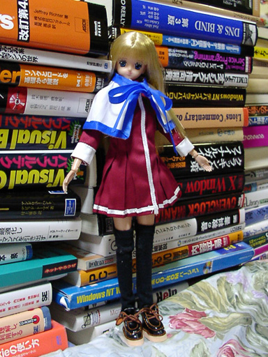 背景の御本、いいとこ選んだでしょー? ちょっと左にズレるとあまり人様に言えない本の山になっちゃうもんね。そっちの方が一般的にウケただろうけど。おしいことしたかなぁ。(笑